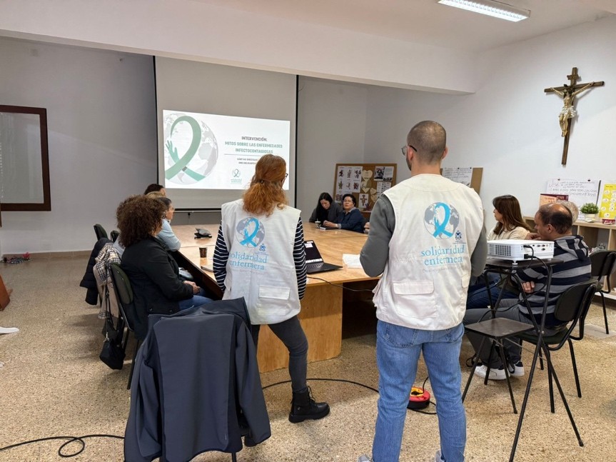 La ONG Solidaridad Enfermera ha desarrollado una intervención formativa en la sede de Cáritas en La Vera, en Puerto de la Cruz, dirigida a más de 15 voluntarios que trabajan directamente con personas en situación de sinhogarismo. Bajo el título “Mitos sobre las enfermedades infectocontagiosas”, la sesión no solo abordó aspectos clínicos, sino que puso el foco en uno de los mayores retos actuales: el miedo y el estigma.