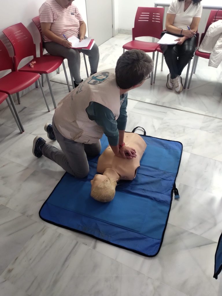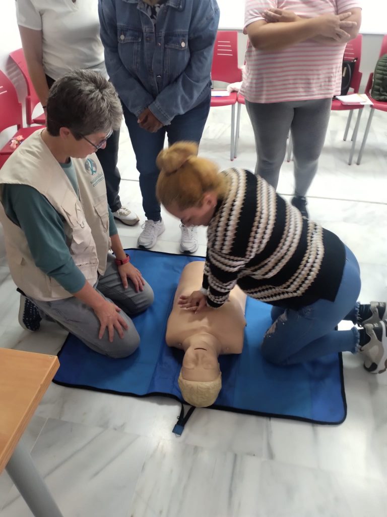 La actividad, de dos horas de duración, contó con la participación de ocho personas y fue impartida por la enfermera María del Mar Torres Navarro. Durante el taller se abordaron contenidos clave como la regla PAS, actuación ante personas inconscientes, maniobra de Heimlich, soporte vital básico y primeros cuidados ante quemaduras, heridas y hemorragias.