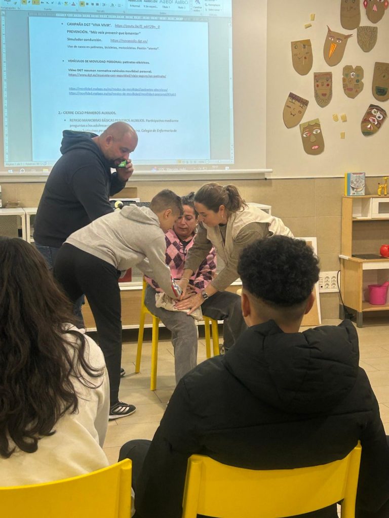 Solidaridad Enfermera Málaga participó el pasado jueves en una actividad educativa organizada junto a Aldeas Infantiles SOS, dirigida a jóvenes y centrada en la prevención de accidentes, la seguridad vial y la adquisición de nociones básicas de primeros auxilios.