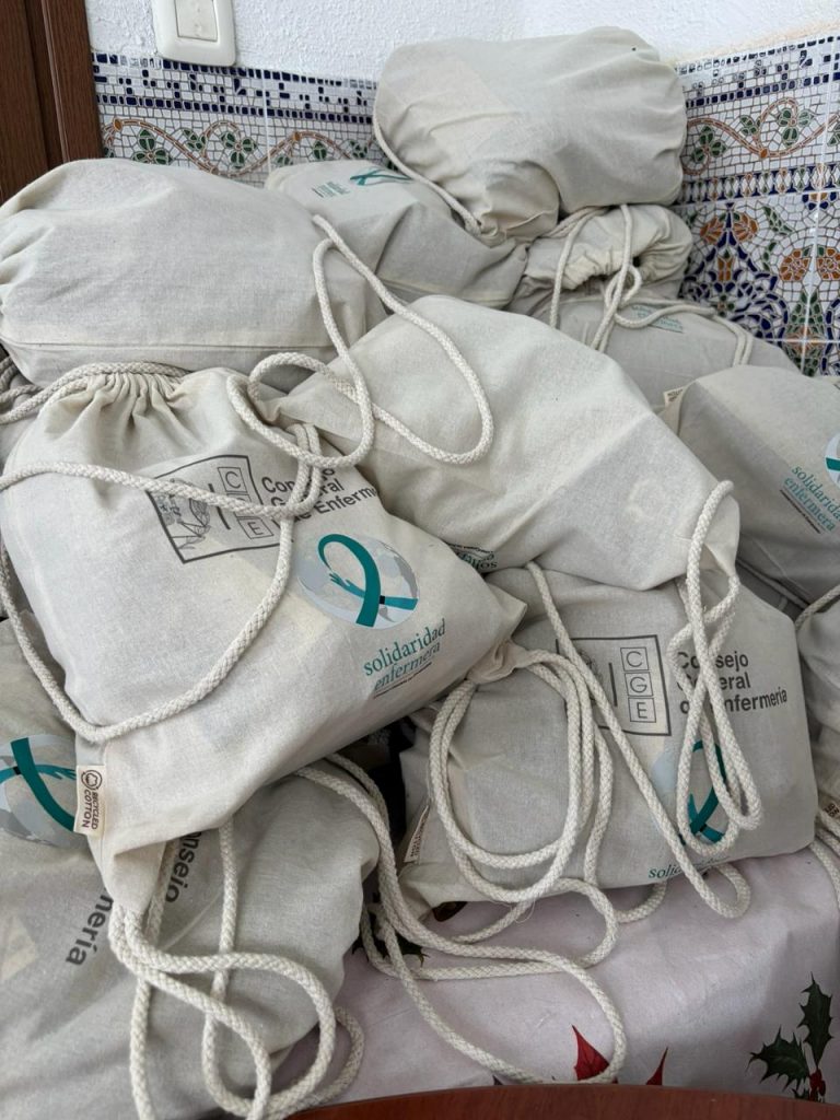 Cada kit entregado incluye materiales básicos como cepillos de dientes, champú, crema hidratante, agua, camisetas y pantalones térmicos, gorros y calcetines. Además, se incorpora una tarjeta en varios idiomas con el mensaje “Tu bienestar importa” y un código QR que da acceso a vídeos de educación sanitaria y autocuidado elaborados por enfermeras y enfermeros, disponibles en Canal Enfermero